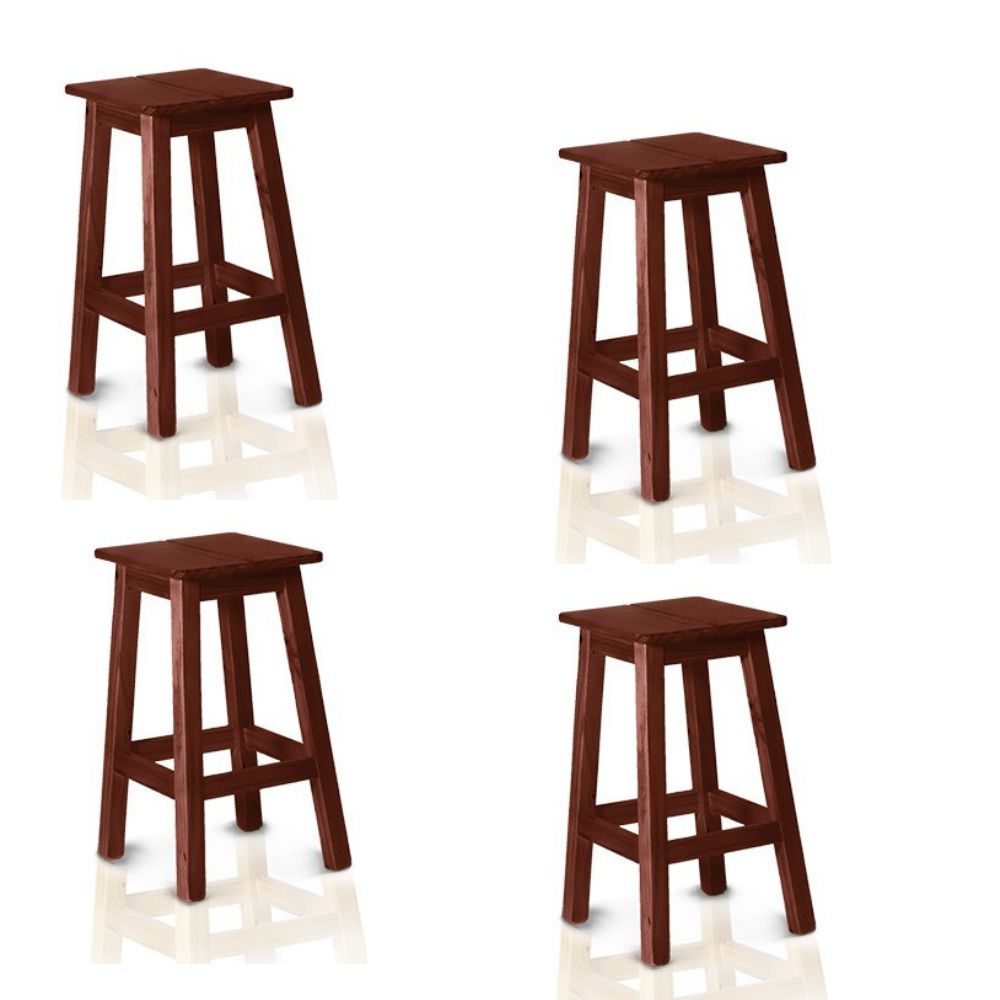 Kit 4 Banquinhos Banqueta de Madeira Maciça 50x27 Bonacor Mogno