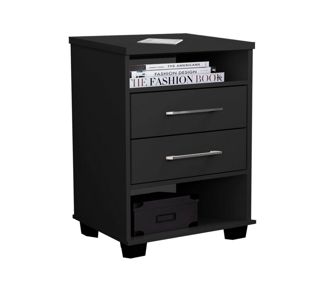 Mesa de Cabeceira Preta Com 2 gavetas Valente